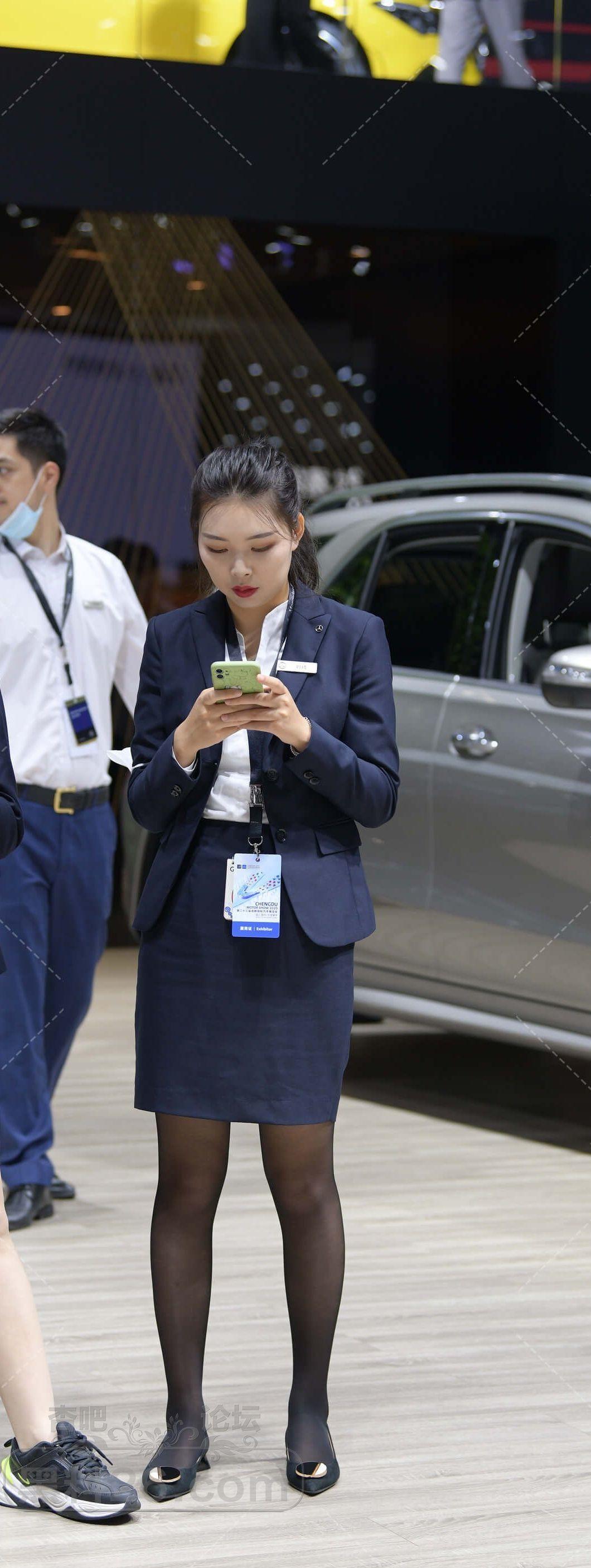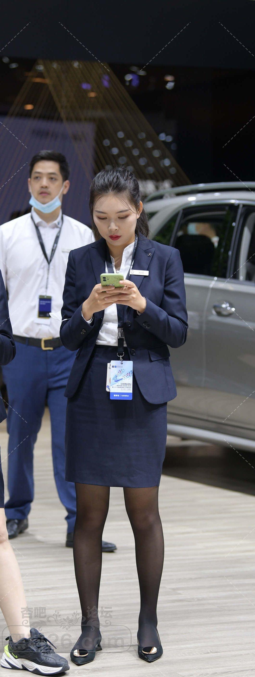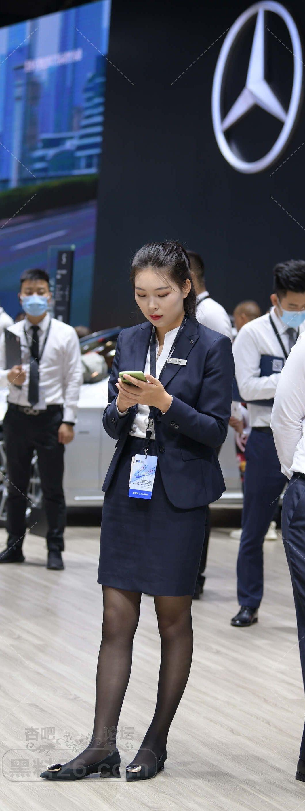 黑色制服售车员小姐姐展会上黑丝美腿吸睛【10P】