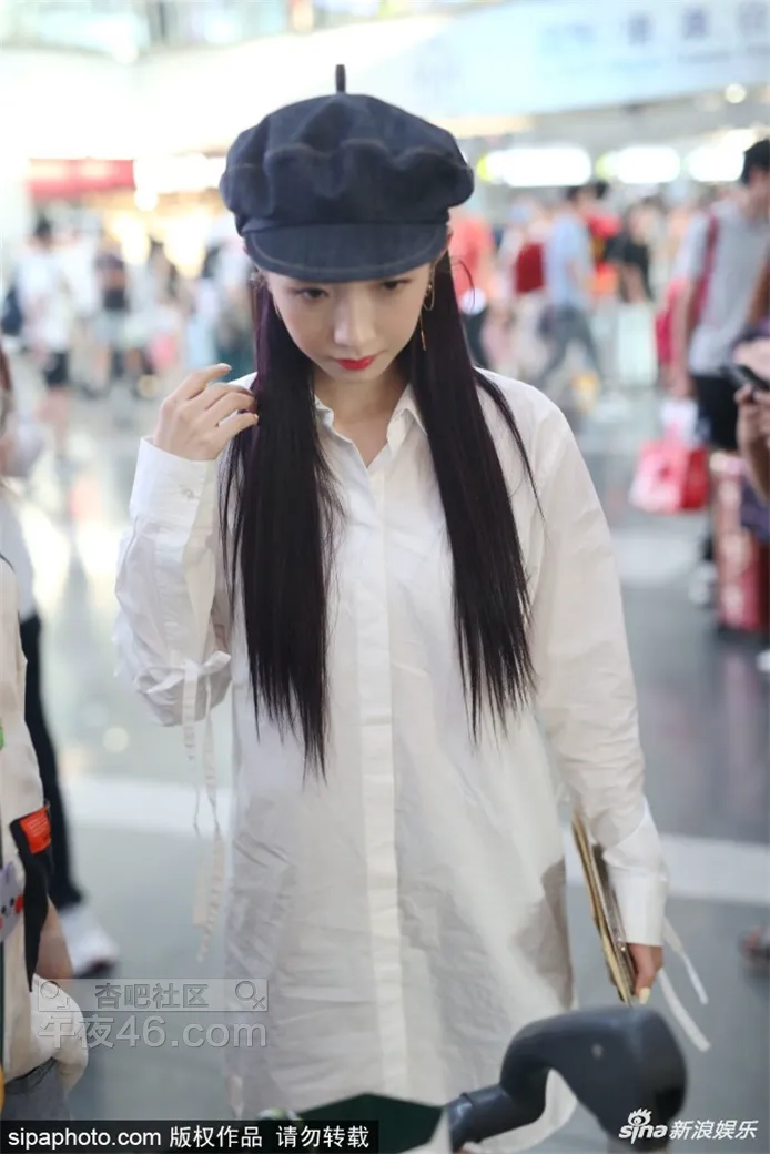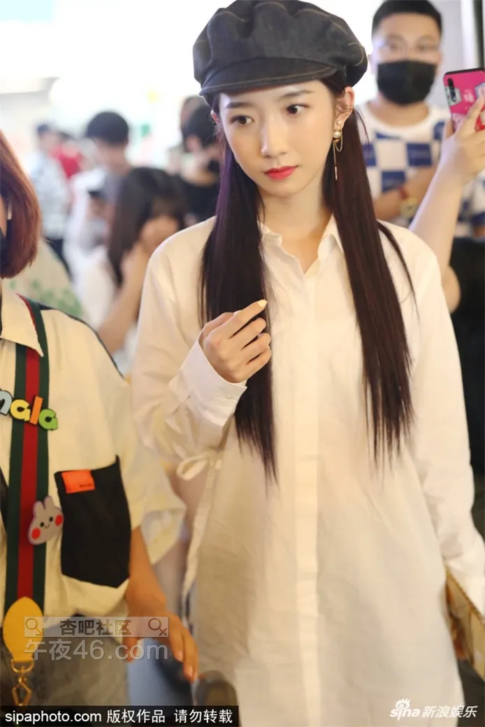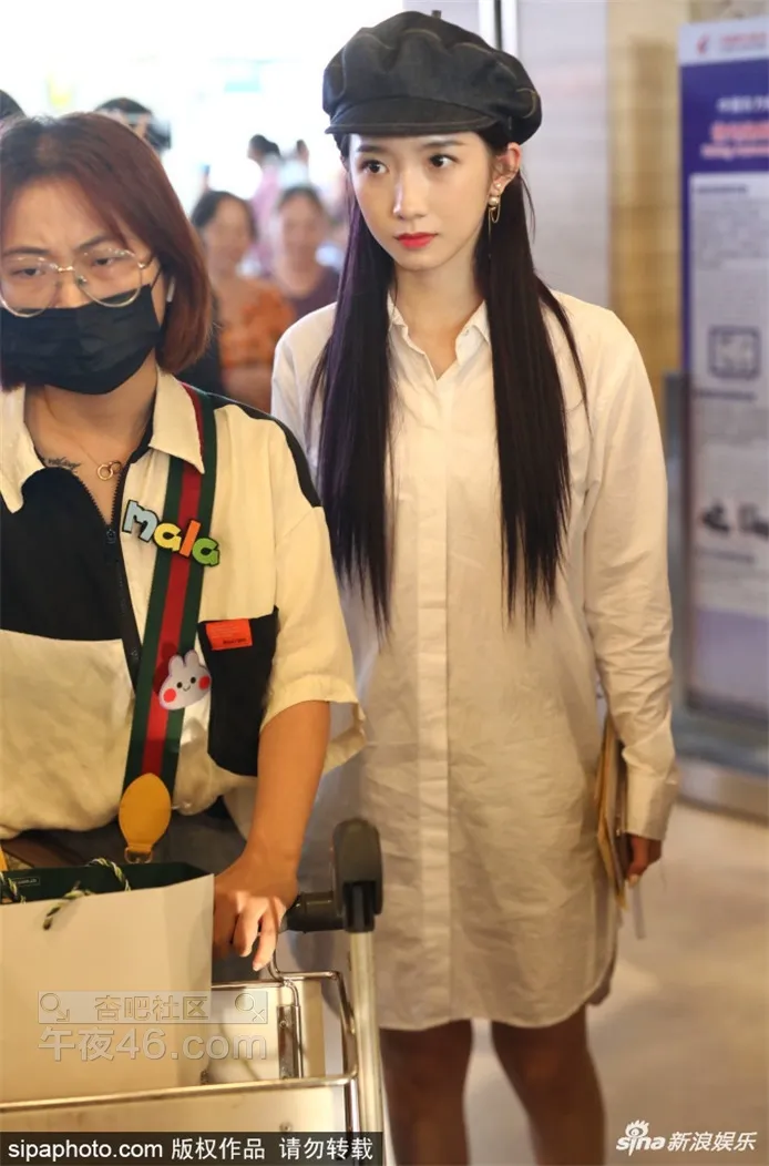孟美岐清纯造型现身机场 皮肤白皙贝雷帽点缀乖巧甜美【21P】